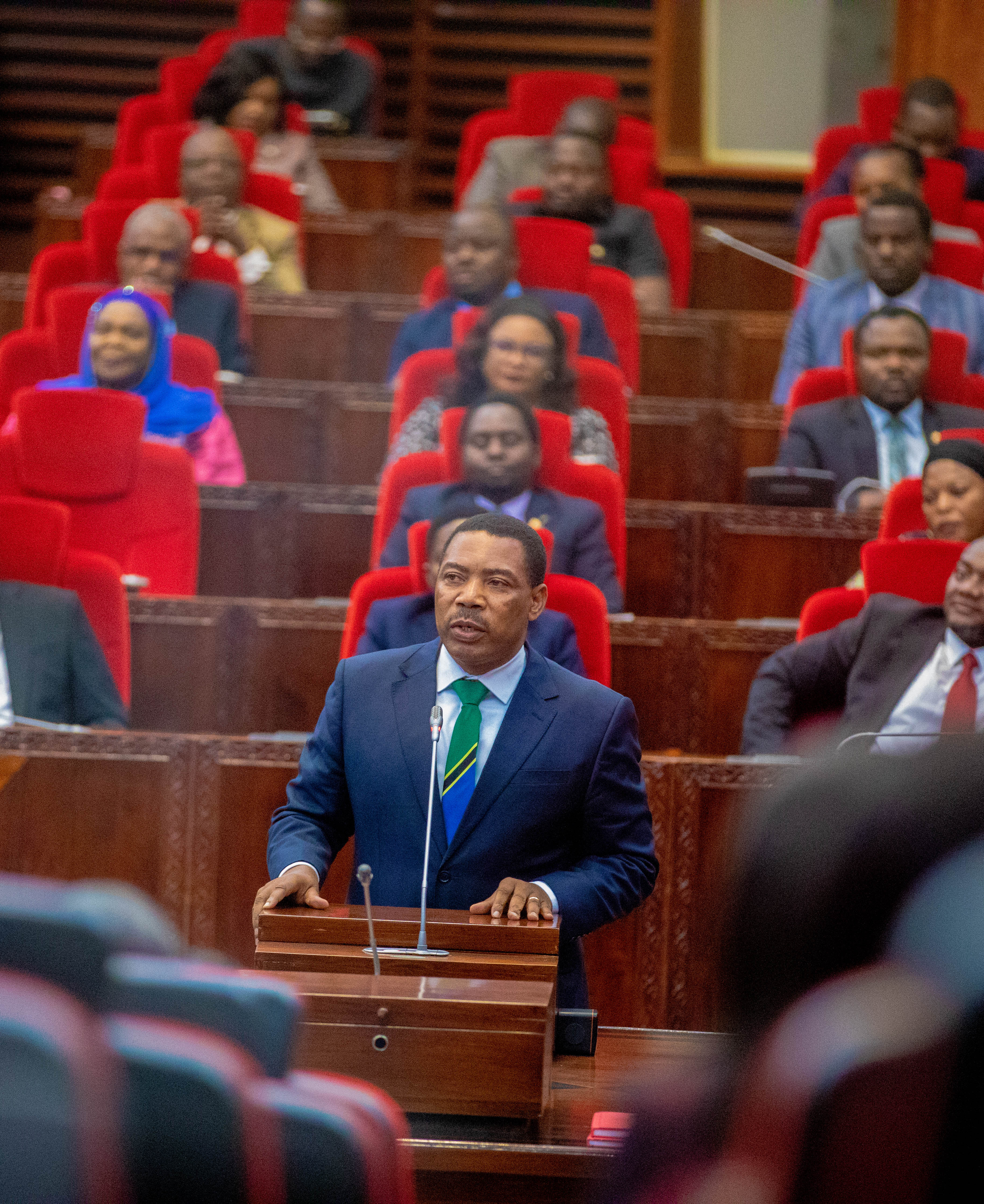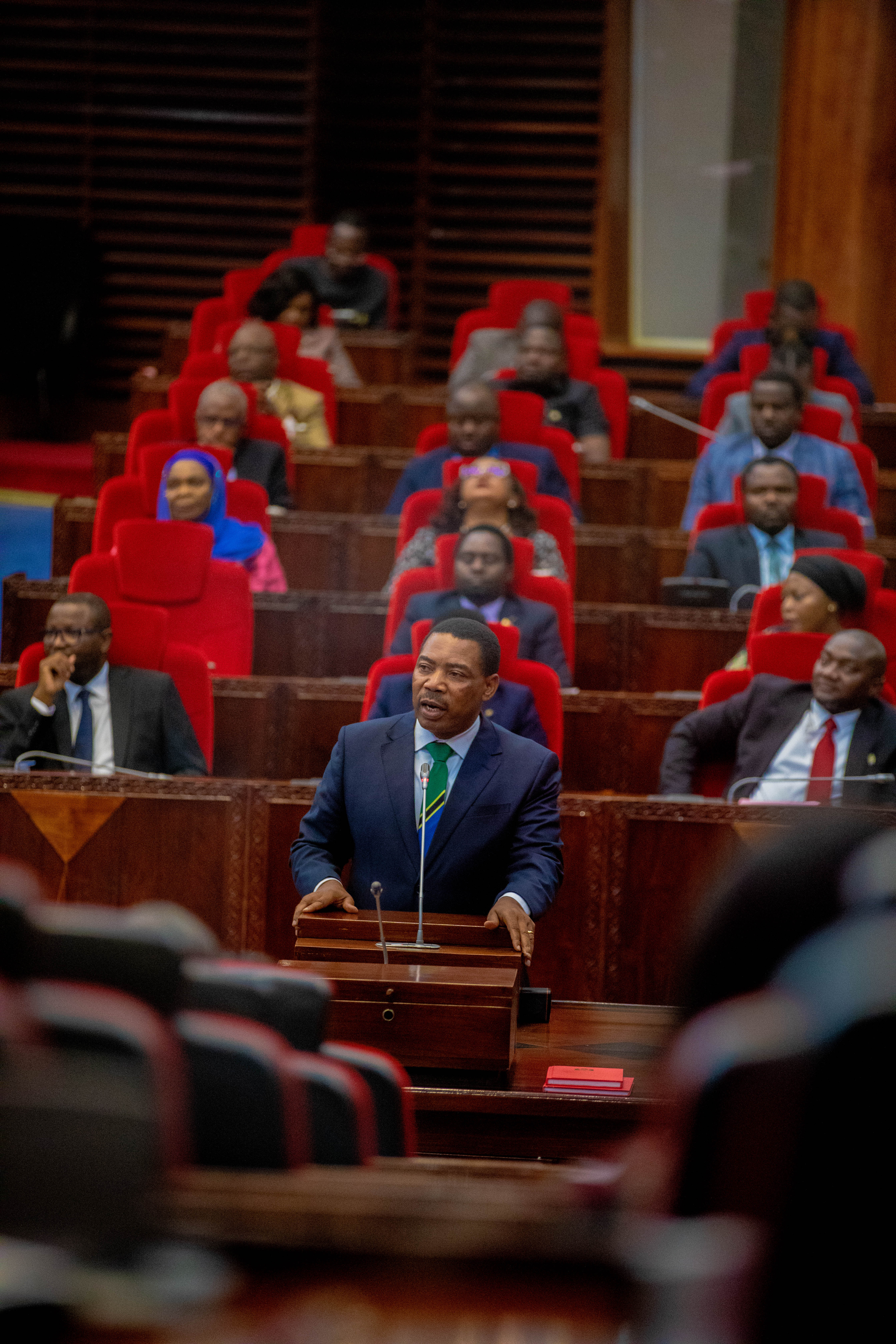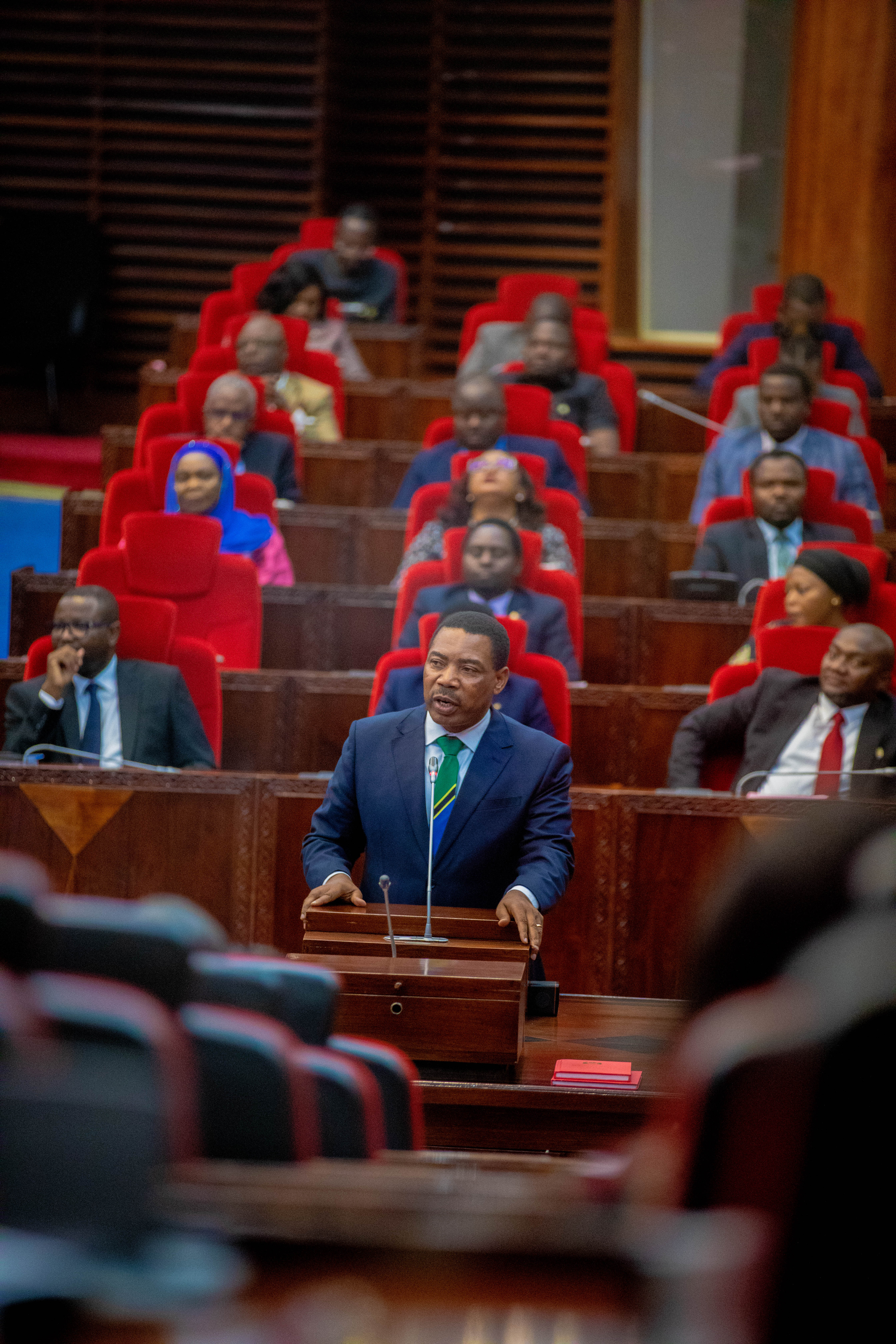 Mheshimiwa Dkt. Mwigulu Nchemba akizungumza Bungeni mara baada ya kuthibitishwa na Waheshimiwa Wabunge kuwa Waziri Mkuu wa Jamhuri ya Muungano wa Tanzania leo Novemba 13, 2025. Uthibitisho huo umefanyika baada ya Mhe. Rais kumteua Mbunge huyo wa Iramba Magharibi na baadae uteuzi wake kuwasilishwa Bungeni wakati wa Kikao cha Tatu cha Mkutano wa Kwanza wa Bunge la 13 uliofanyika tarehe 13 Novemba, 2025.