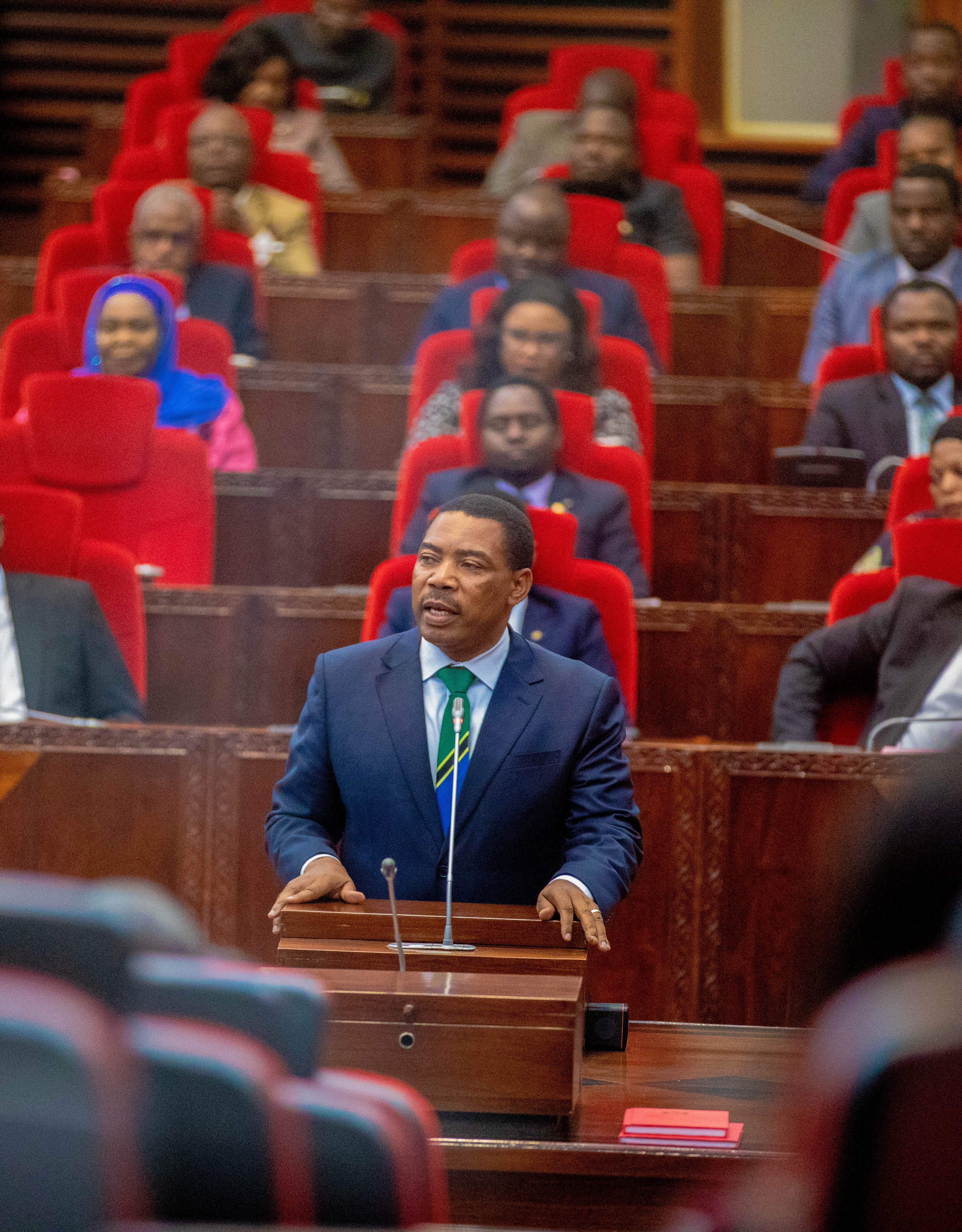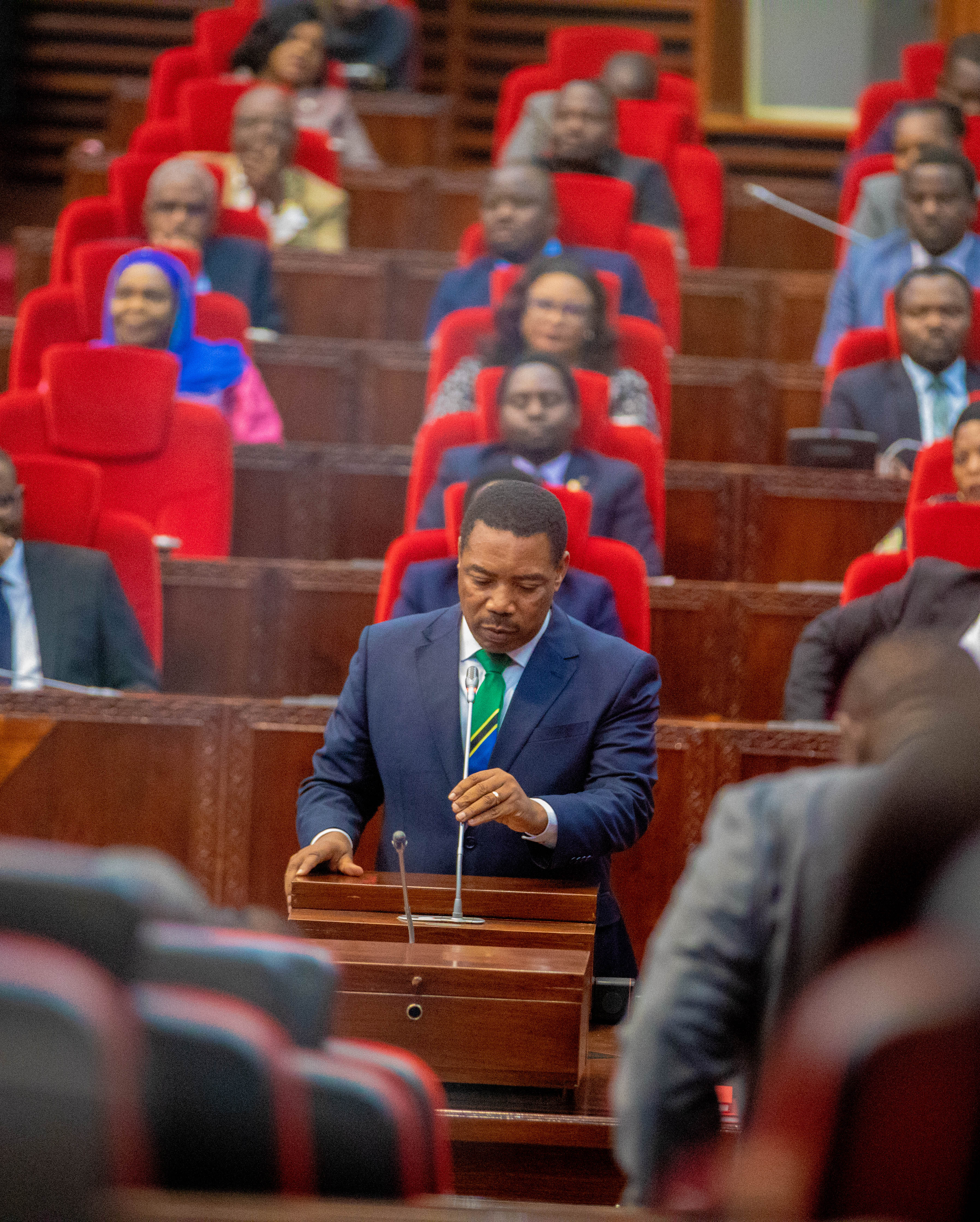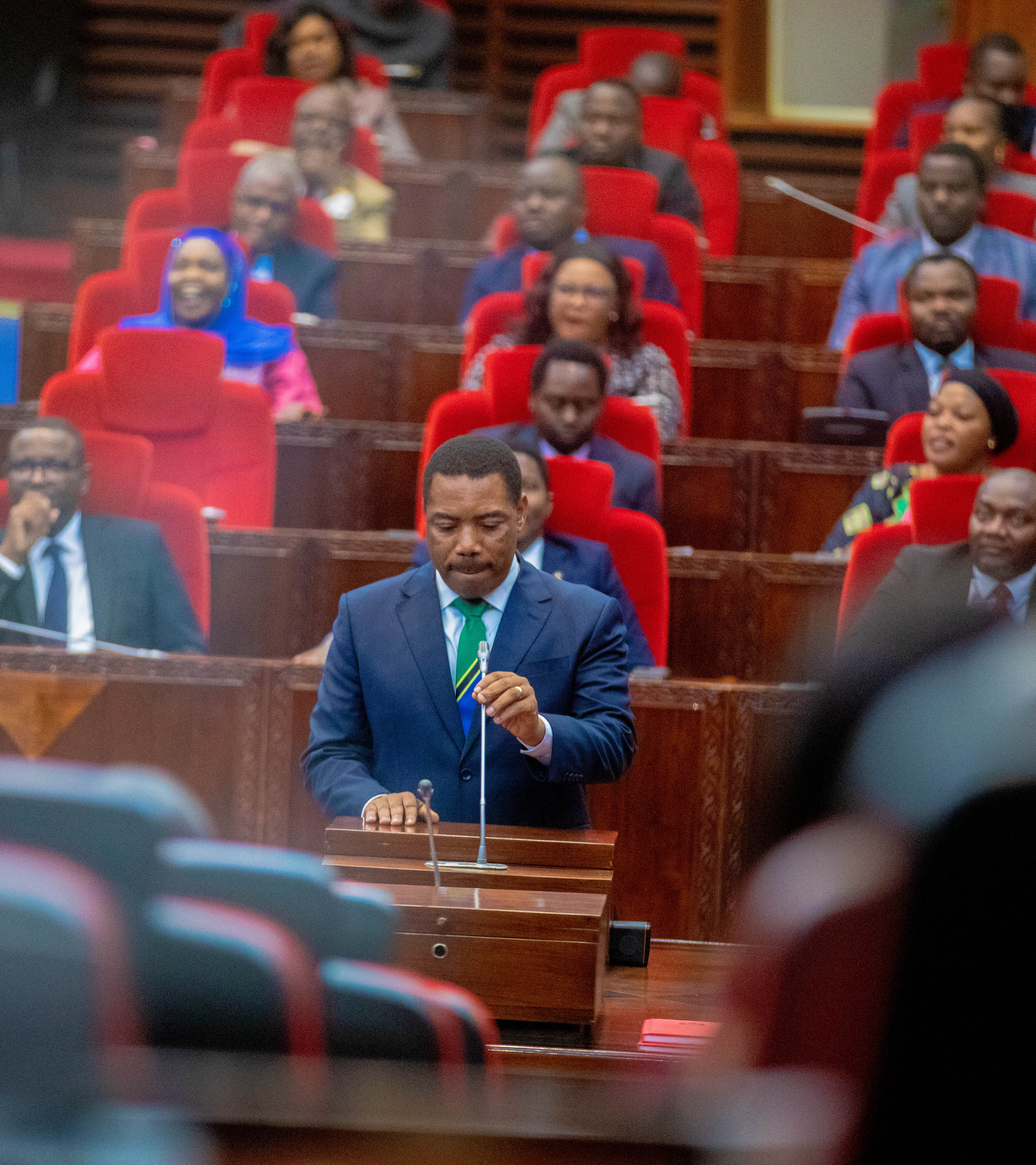 Mheshimiwa Dkt. Mwigulu Nchemba akizungumza Bungeni mara baada ya kuthibitishwa na Waheshimiwa Wabunge kuwa Waziri Mkuu wa Jamhuri ya Muungano wa Tanzania leo Novemba 13, 2025. Uthibitisho huo umefanyika baada ya Mhe. Rais kumteua Mbunge huyo wa Iramba Magharibi na baadae uteuzi wake kuwasilishwa Bungeni wakati wa Kikao cha Tatu cha Mkutano wa Kwanza wa Bunge la 13 uliofanyika tarehe 13 Novemba, 2025.
