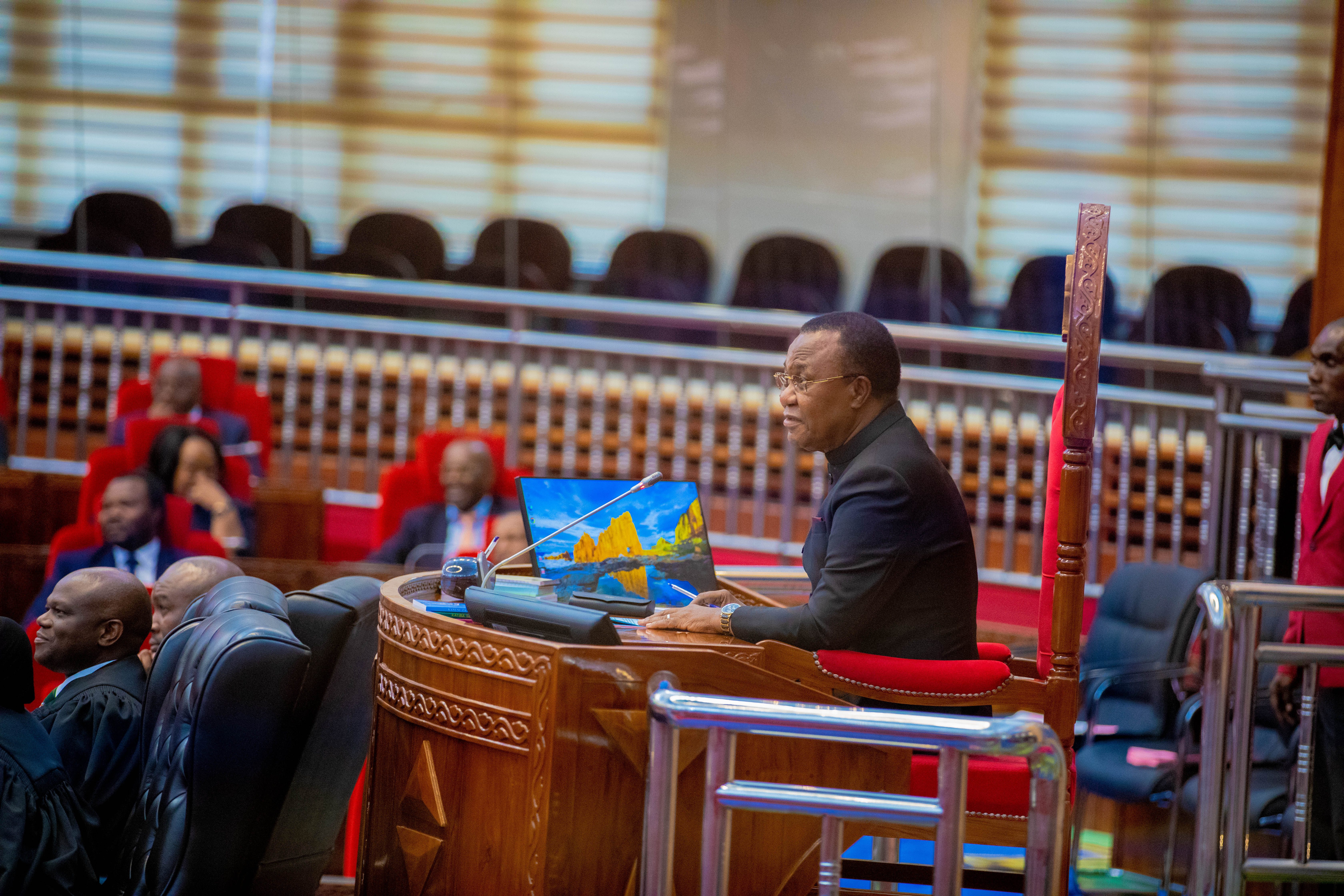 MWENYEKITI WA KIKAO CHA UCHAGUZI WA SPIKA WA BUNGE LA 13, MHE. WILLIUM LUKUVI AKIONGOZA KIKAO HICHO